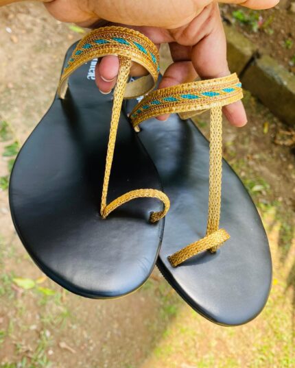 Black & gold Toe Ring Sandals